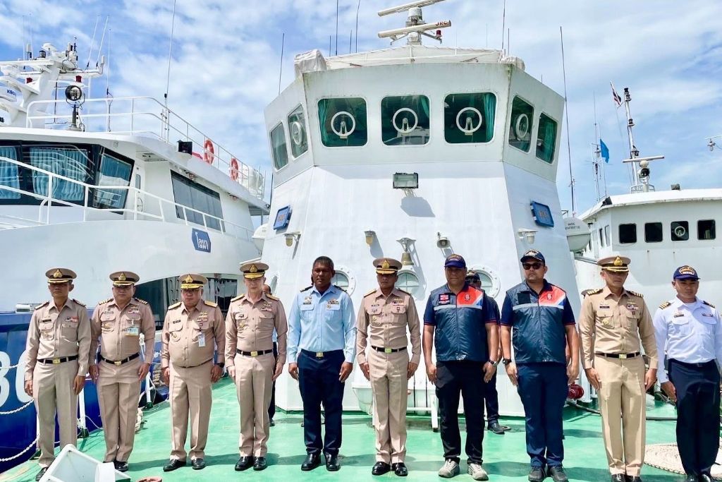 ระหว่างวันที่ 24 - 25 สิงหาคม 2568 พลเรือโท นเรศ วงศ์ตระกูล ผู้บัญชาการทัพเรือภาคที่ 2 และ ผู้อำนวยการศูนย์อำนวยการรักษาผลประโยชน์ของชาติทางทะเลภาค 2 (ศรชล.ภาค 2) และคณะฯ ตรวจเยี่ยมเรือในหมวดเรือเฉพาะกิจ ศรชล.ภาค 2ที่ปฏิบัติงานอยู่ในพื้นที่จังหวัดสุราษฎร์ธานี และ จังหวัดนครศรีธรรมราช เพื่อสร้างขวัญและกำลังใจให้กับเจ้าหน้าที่ประจำเรือซึ่งหน่วยงานต่าง ๆ ใน ศรชล.จัดมาสนับสนุน รวมทั้งรับทราบปัญหา ข้อขัดข้อง และ ข้อเสนอแนะ จากการปฏิบัติภารกิจที่ได้รับมอบหมาย เพื่อนำไปปรับปรุงแก้ไขแนวทางการปฏิบัติในอนาคตให้มีประสิทธิภาพยิ่งขึ้น