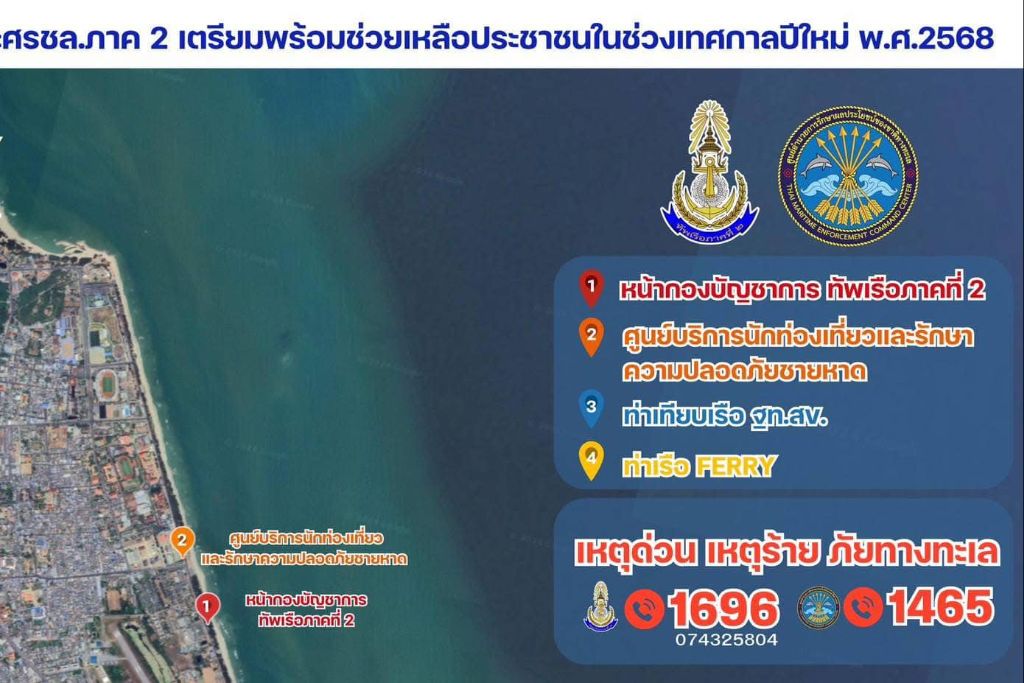 ในวันเสาร์ที่ 28 ธันวาคม 2567 พลเรือโท นเรศ วงศ์ตระกูล ผู้บัญชาการทัพเรือภาคที่ 2 และผู้อำนวยการศูนย์อำนวยการรักษาผลประโยชน์ของชาติทางทะเลภาค 2 ตรวจเยี่ยมความเรียบร้อยจุดบริการประชาชน บำรุงขวัญ รวมทั้งกล่าวขอบคุณกำลังพลและเจ้าหน้าที่ ที่เสียสละมาปฏิบัติงานเพื่อประชาชนในครั้งนี้ โดยจุดบริการประชาชนจัดตั้งเพื่ออำนวยความสะดวกด้านสาธารณะ ป้องกันและรักษาความปลอดภัยให้กับประชาชนและนักท่องเที่ยวบริเวณชายหาดสมิหลา ชายหาดชลาทัศน์ และพื้นที่โดยรอบ ในช่วงเทศกาลปีใหม่