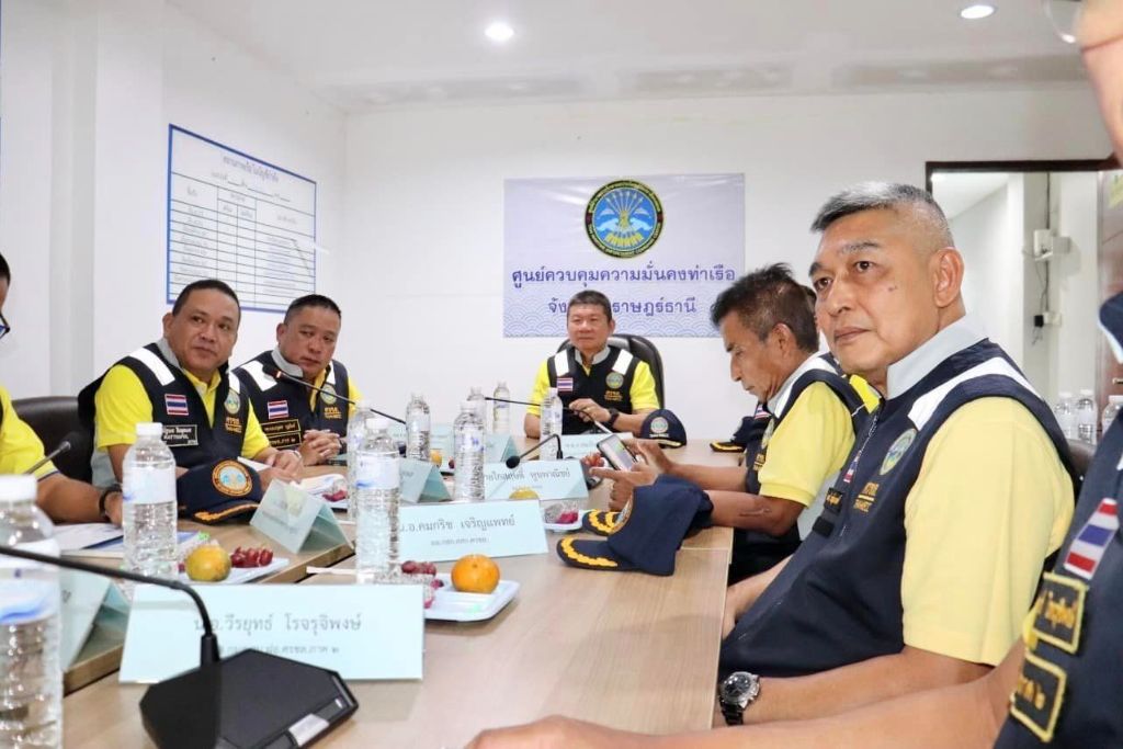 ในการนี้ได้ร่วมฟังการบรรยายสรุปผลการปฏิบัติงานที่ผ่านมา จาก ศรชล.จว.สุราษฎร์ธานี และ ศคท.จว.สุราษฎร์ธานี รวมทั้งรับฟังปัญหา อุปสรรคข้อขัดข้อง ณ สำนักงาน ศคท.จว.สุราษฎร์ธานี