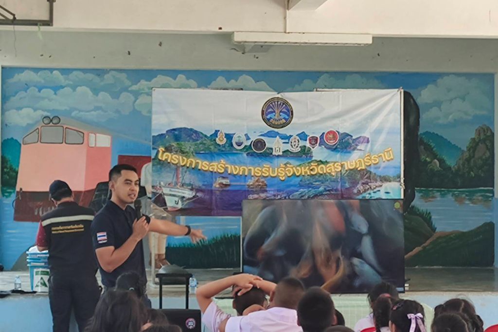 โดยบูรณาการร่วมกับสำนักงานทรัพยากรธรรมชาติและสิ่งแวดล้อมจังหวัดสุราษฎร์ธานี และประมงอำเภอคีรีรัฐนิคม ร่วมเป็นวิทยากรในการบรรยายให้ความรู้กับนักเรียน